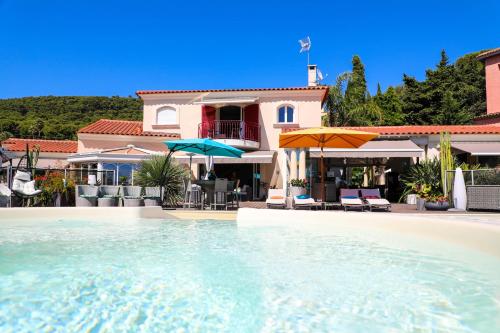 Proposant une piscine, un jardin, un bar et connexion Wi-Fi gratuite, l’établissement B&B Val D'azur se trouve à Carqueiranne et offre une vue sur la piscine.